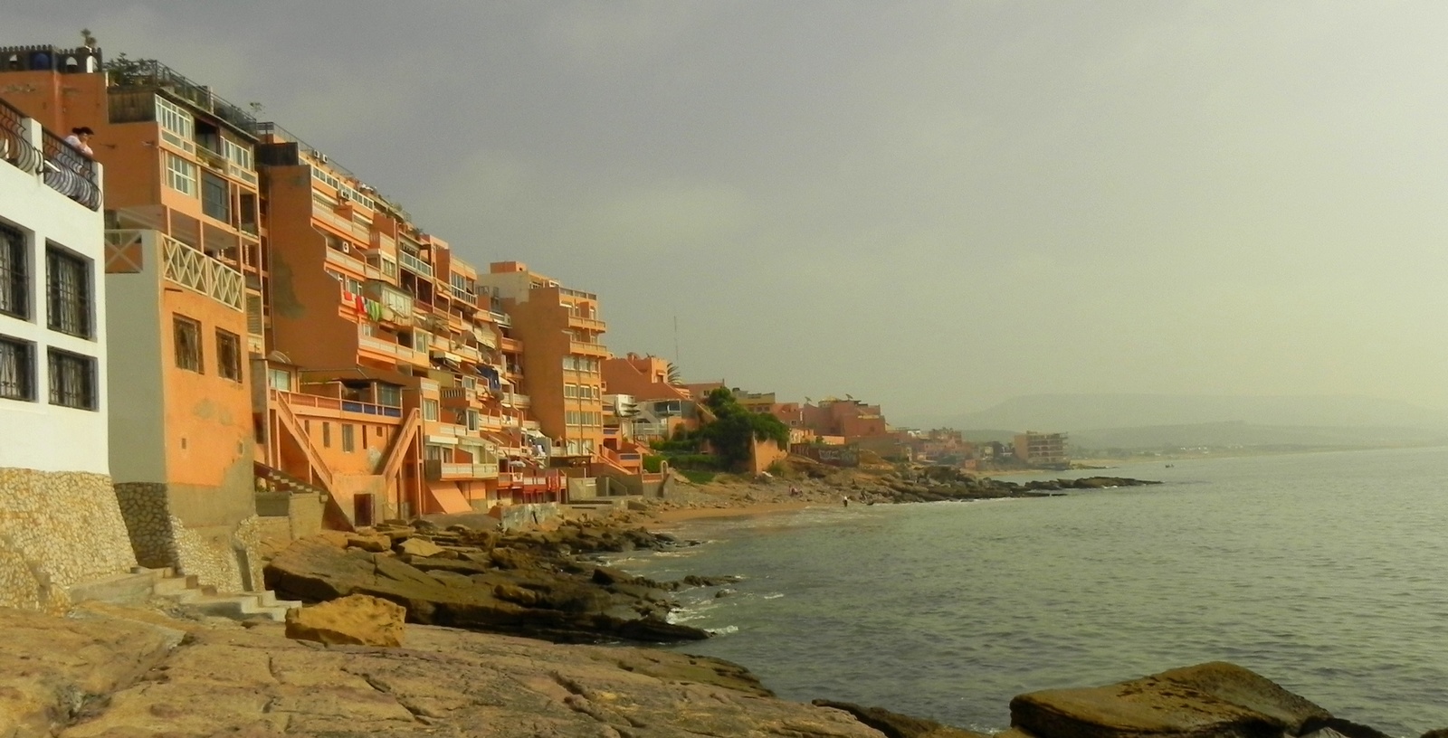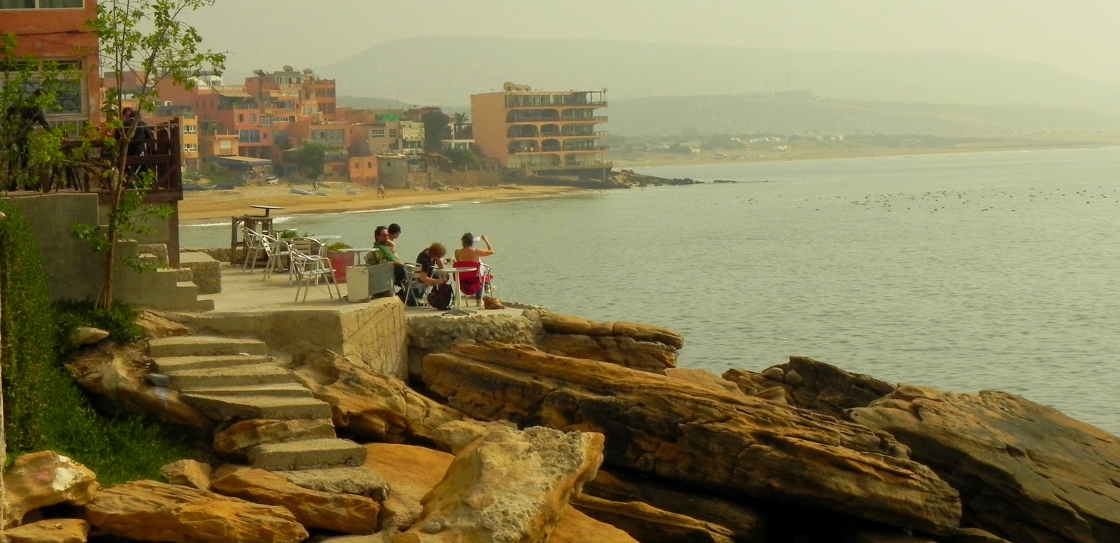 Mas novas emoções ainda estavam por vir… Chegando em Agadir, deveria estar me esperando no terminal de ônibus, uma pessoa do surf-camp que eu havia reservado desde o Brasil, para fazer o meu transfer até Taghazout, onde ficaria hospedado e surfando pelos próximos 4 dias. Desci do ônibus e não havia ninguém à minha espera. Aguardei um tempo e nada. Resolvi pegar um táxi por conta e pedi para me levar a Taghazout … e eu falando com os caras com o meu francês brilhante!!