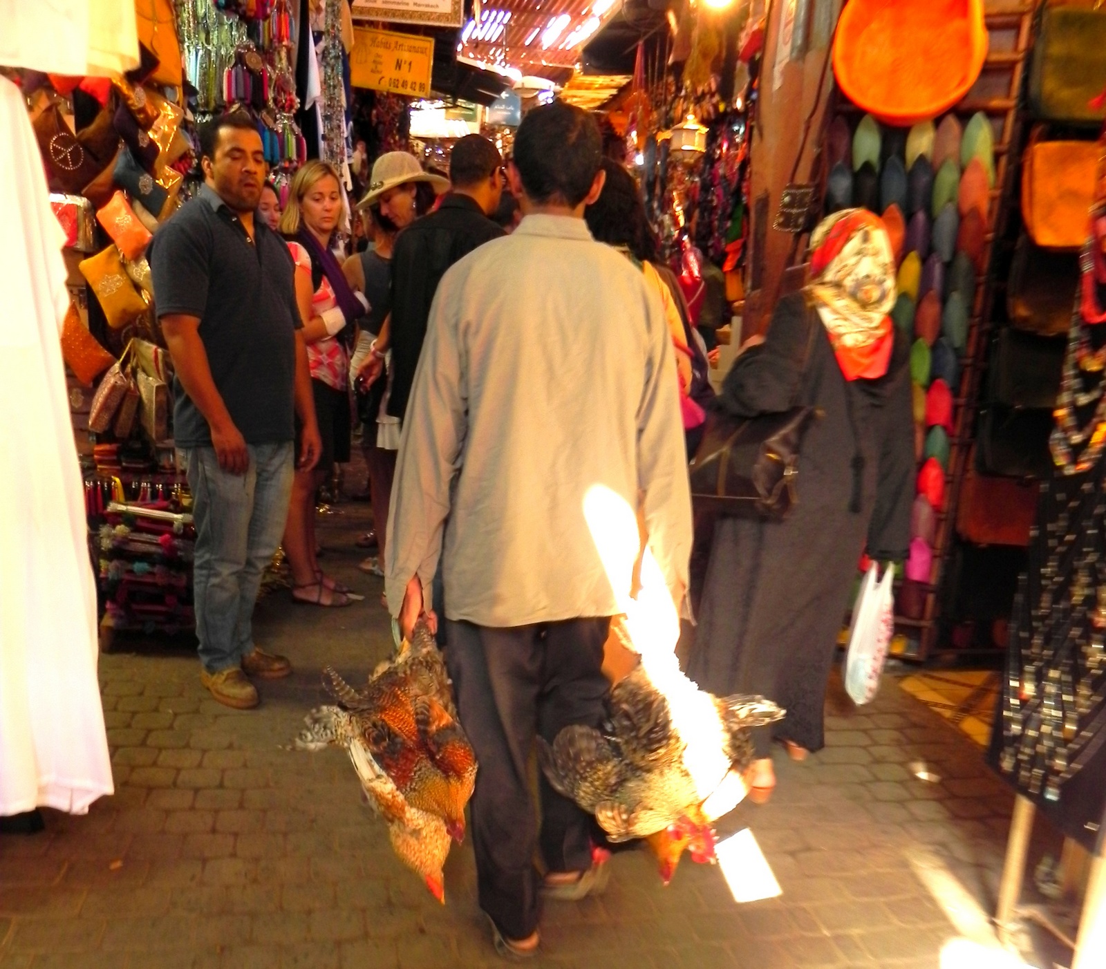 Depois de rodarmos alguns minutos, nos aproximamos da Medina. À semelhança de muitas cidades norte-africanas e do Oriente Médio, Marrakesh possui uma parte fortificada (a Medina) e uma cidade moderna adjacente. Ao transpor as muralhas que separam Ville Nouvelle (parte externa moderna) da Medina (parte antiga da cidade), tem-se a impressão de estar atravessado cerca de 1000 anos em alguns passos. Dentro da Medina, são poucas ruas onde os carros conseguem transitar e, para chegar ao meu hotel, o meu transfer iria me deixaria no local mais próximo possível. A partir de lá então eu teria que fazer uso do serviço de um “guia”, para que o mesmo me conduzisse até a localização do meu hotel. Dentro da Medina, a cidade é um completo labirinto, e se você não à conhece, é simplesmente impossível encontrar qualquer lugar! Por isso, tem uns garotos nestes pontos de desembarque que ajudam os turistas com as malas e cobram uma taxa para conduzi-los pelas vielas até os seus hotéis. Para completar o cenário, a Medina de Marrakesh possui o maior Souk (zoco, mercado tradicional) do país, ademais de uma das praças mais movimentadas da África, a Djema el Fna, que abriga acrobatas, vendedores de suco, dançarinos, músicos, barracas de comida, etc… Foi nesta praça que o transfer me deixou e onde dois meninos me “guiaram” até o Riad onde eu ficaria hospedado.