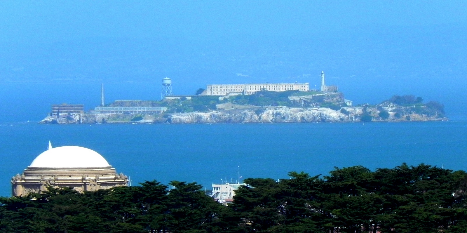 Alguns kms a frente da Golden Gate, no meio da baía de San Francisco, está um dos mais célebres presídios do planeta, Alcatraz. Sua fama de ter uma “fuga impossível” foi garantida não só pela vigilância permanente, mas também pelas águas gélidas da baía e seus tubarões, que tornavam uma travessia a nado pouco suscetível ao sucesso. Dentre seus ‘hóspedes’ mais célebres estiveram “Machine Gun” Kelly, o gângster-mor Al Capone, Robert Stroud – o homem-passarinho, e Frank Morris e os irmãos Anglin, os homens que chegaram mais perto de uma fuga, mas nunca mais foram vistos. Em 1979 foi feito um filme sobre essa fuga com Clint Eastwood chamado Escape from Alcatraz.