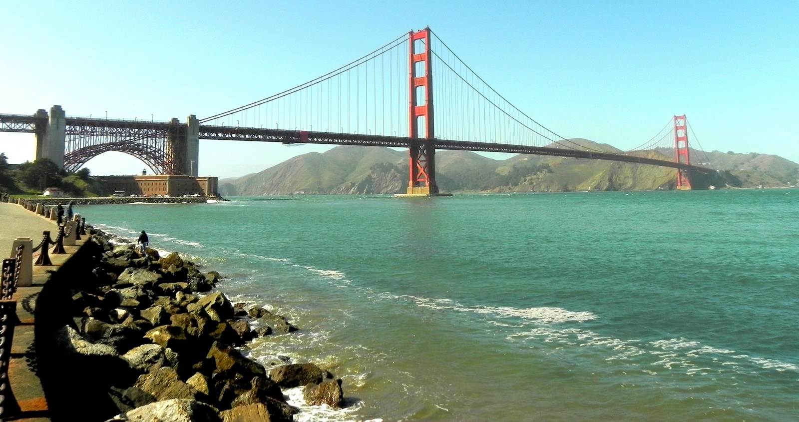 A ponte pênsil Golden Gate Bridge, é considerada um dos maiores símbolos da América. Suas linhas art-deco pintadas em vermelho são ao mesmo tempo um feito da engenharia, ligação viária fundamental e obra de arte. A ponte Golden Gate Bridge é um exemplo bem acabado de construção que foi muito além de sua função original – ligar Marin County à cidade de San Francisco, para tornar-se o símbolo principal desta última. À época de sua finalização, em 1937, era a maior estrutura do mundo, possuindo quase 3 quilômetros de comprimento e mais de 200 metros de altura, colosso que redefiniu a engenharia civil no século 20.