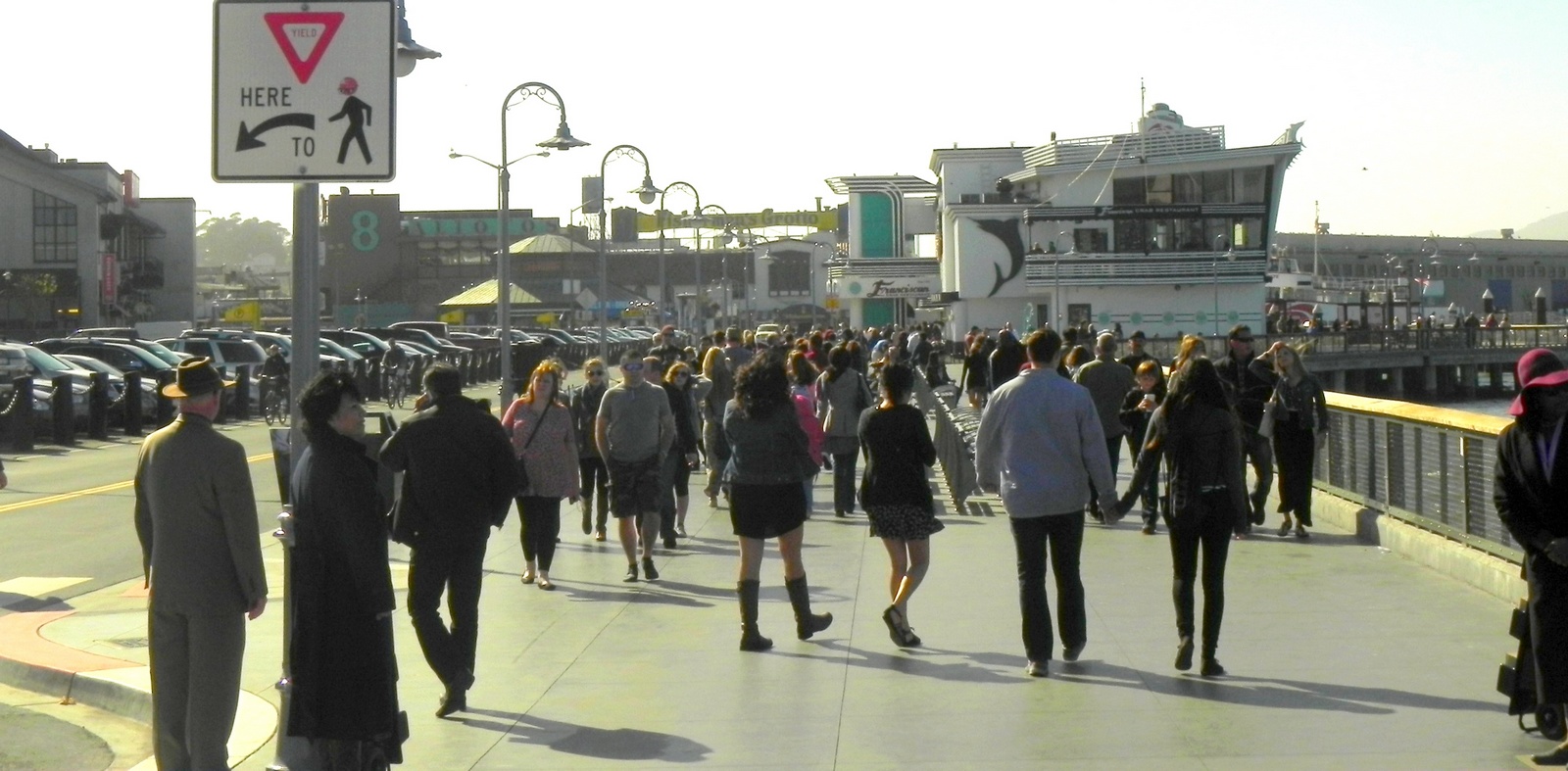 Seguimos então para a região do Fisherman’s Wharf. Um dos pontos turísticos mais queridos de San Francisco, o Fisherman’s Wharf é o antigo ancoradouro onde atracavam os pesqueiros no século 19 e que hoje abriga lojas, restaurantes e bares.