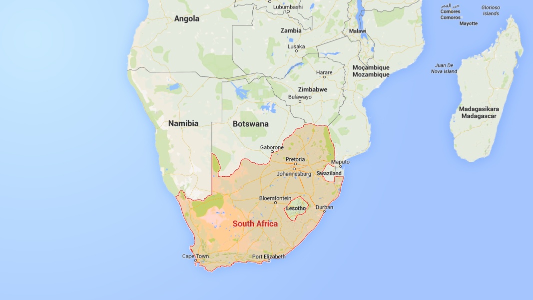 A África do Sul, localiza-se no extremo sul do continente africano, entre os oceanos Atlântico e Índico, com 2.798 quilômetros de litoral, estando limitada pela Namíbia, Botsuana e Zimbábue ao norte; Moçambique e Suazilândia a leste; e com o Lesoto, um enclave totalmente rodeado pelo território sul-africano. O país é o 25.º maior do mundo em área.