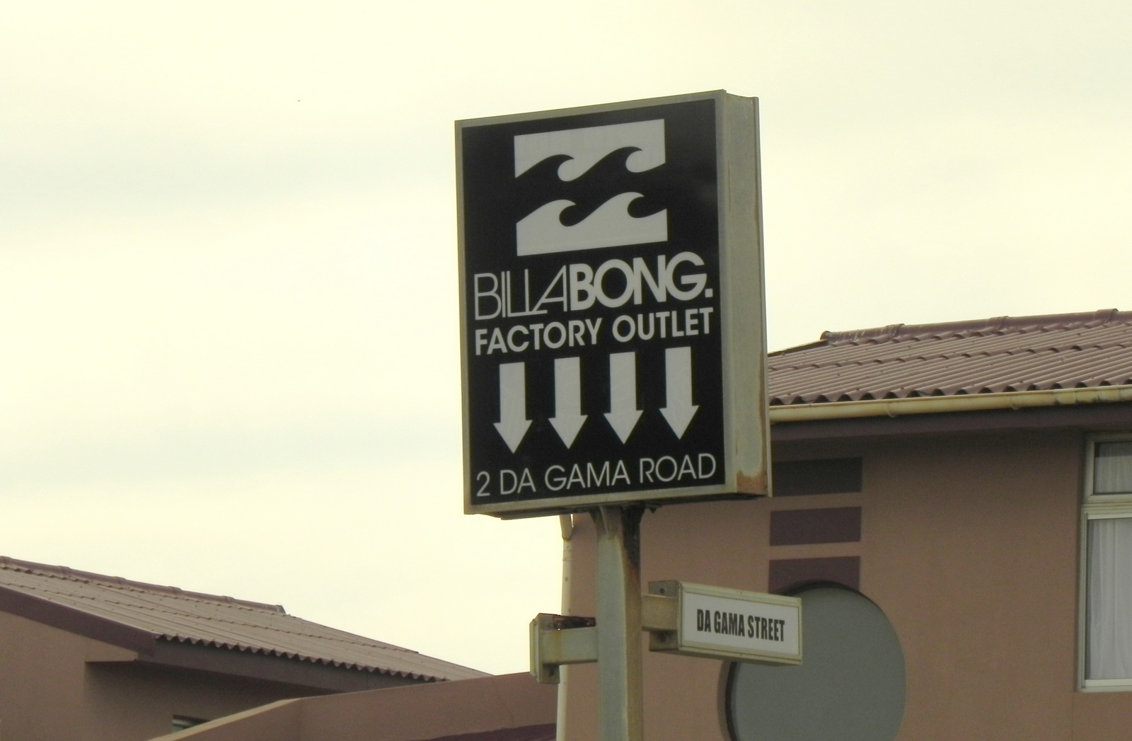 No dia seguinte (05/09), enquanto esperávamos o mar dar a reagida que prometia pelos surf reports, tiramos um tempo para visitarmos as Outlets de Jeffreys Bay. Além de ser um pico de ondas clássicas, J-Bay é renomada e popular também por seus vários factory shops. A cidade é uma espécie de quartel-general na África do Sul das principais marcas de surfe. A Billabong possui inclusive uma fábrica sua instalada lá. Sendo assim, são inúmeras as Factory Outlets disponíveis na cidade e tem muito material, roupa, calçados e acessórios por uma verdadeira pechincha.