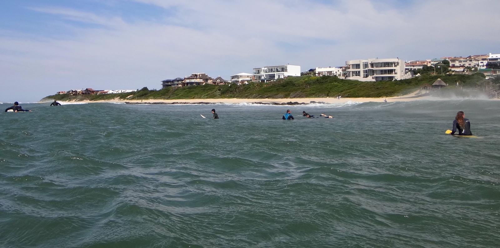 Pelo nosso roteiro original, ficaríamos até o meio-dia de sábado (06/Set) em Jeffreys Bay e seguiríamos viagem à tarde com destino à Mossel Bay, onde passaríamos a noite, pegaríamos umas ondas e partiríamos no dia seguinte para a Cidade do Cabo. Porém as previsões apontavam que justamente nesse dia o mar cresceria em J-Bay com condições perfeitas de vento, e a possibilidade de rolar um clássico era grande. Sendo assim, decidimos estender a nossa estadia em Jeffreys Bay por mais um dia. Como no Beach Music já estava tudo reservado para o período, tivemos que fazer uma mudança de hotel. Fomos então para um apartamento no SeaShells, que faz frente com a Gama Road e fundos diretamente na praia de Magnatubes. Assim como o Beach Music, o local era igualmente muito bom.