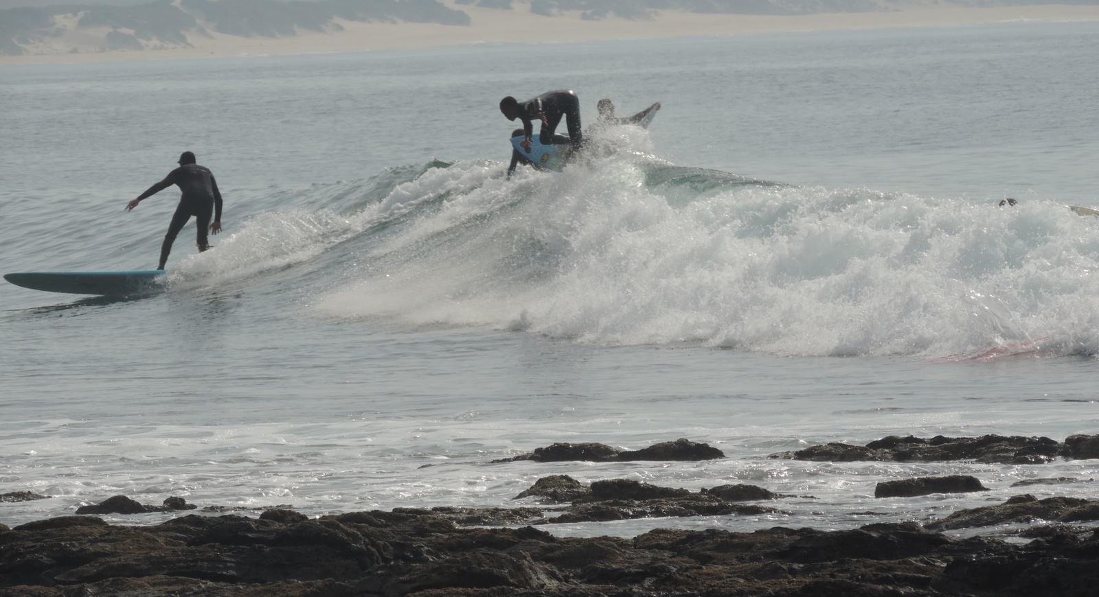 O dia seguinte (03/09) foi de muito surfe em J-Bay. O vento estava batendo de terral e haviam ondas de até 1 metro. Pegamos muita onda boa e estava bastante divertido, especialmente em The Point, onde a onda estava mais longa. Fizemos uma sessão pela manhã e outra de tarde neste dia, ficando na água até o anoitecer.