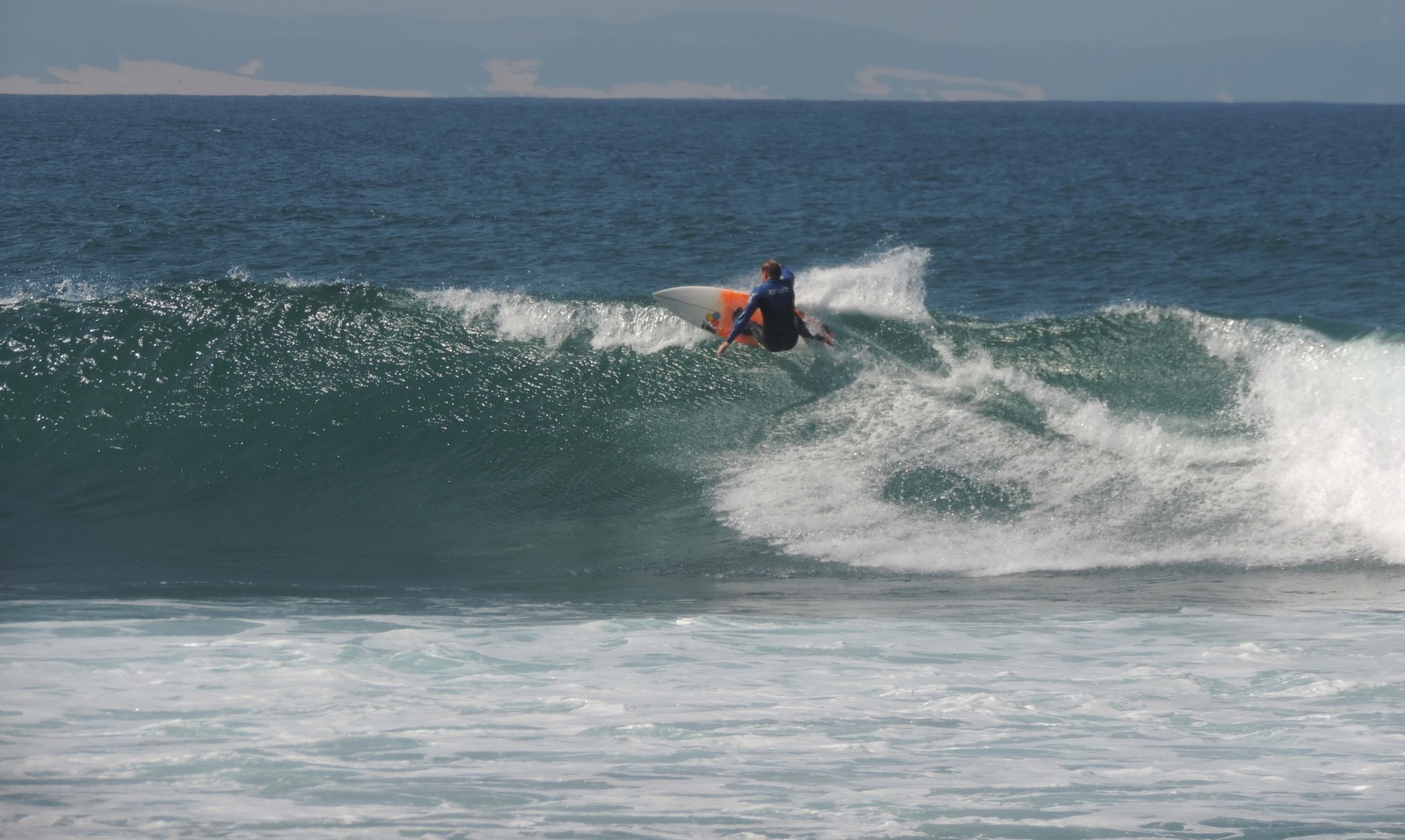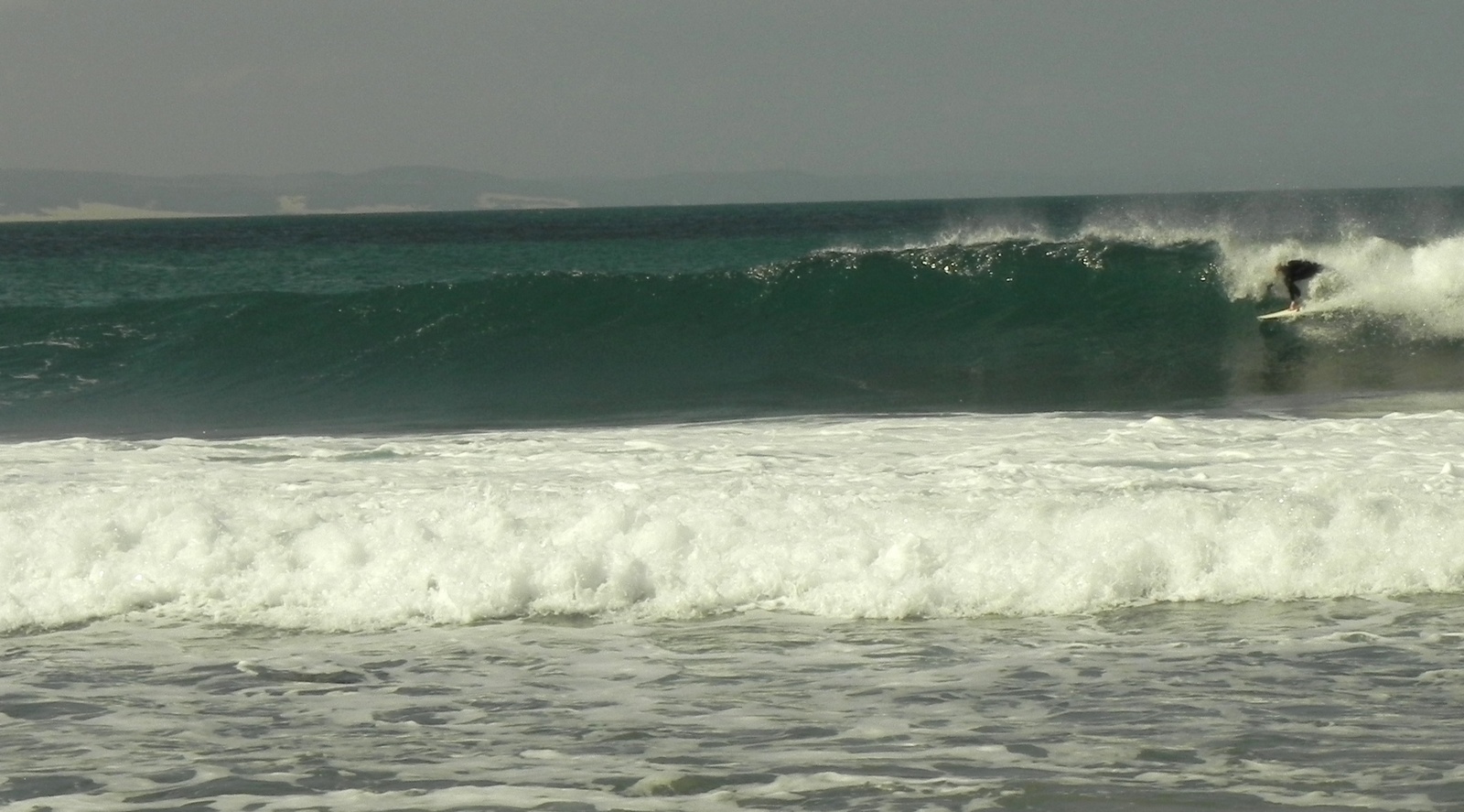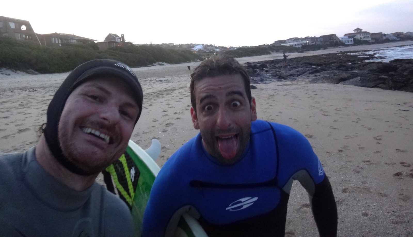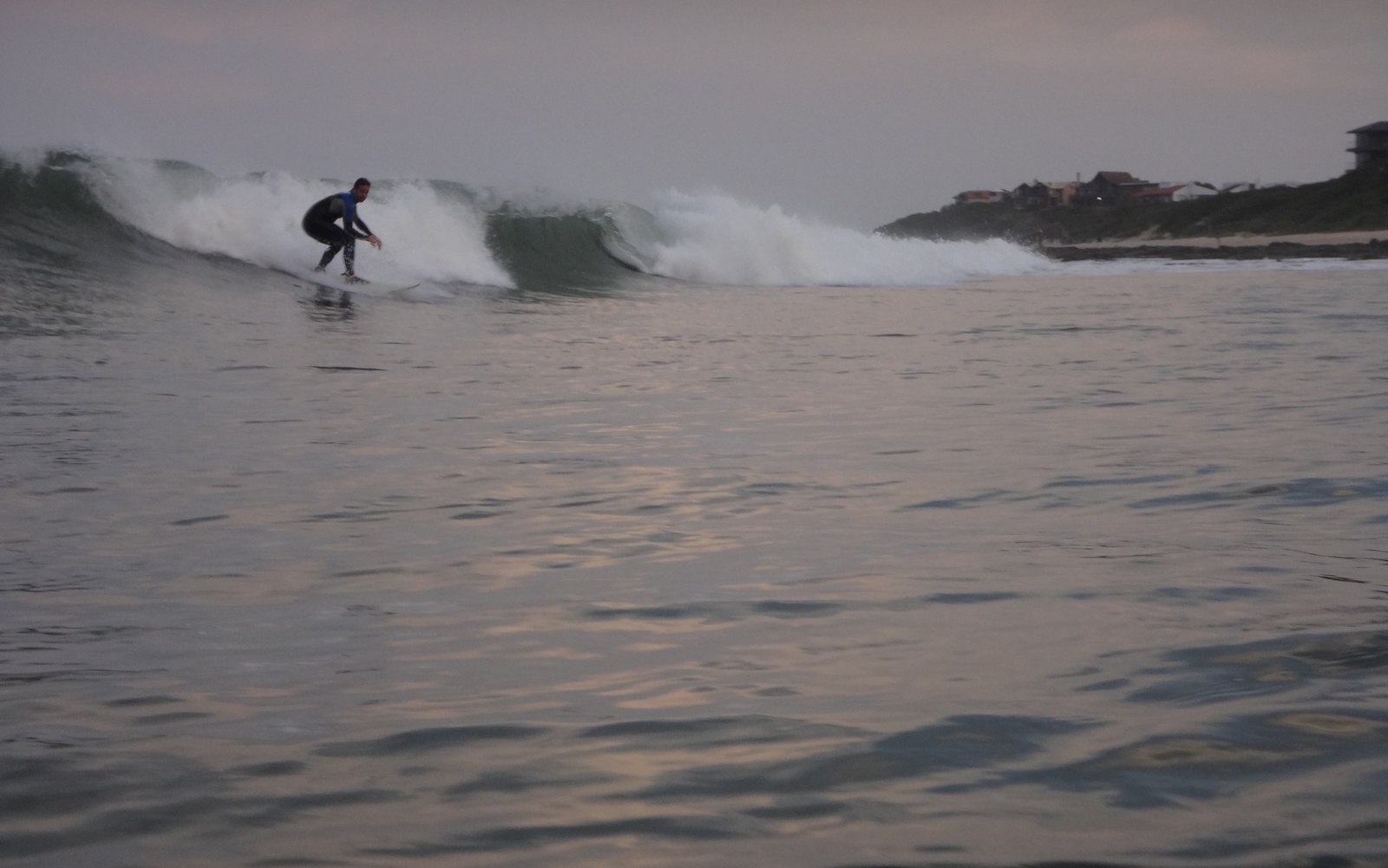 Estávamos completamente quebrados depois de ter estado praticamente 24 horas viajando, mas a fissura era grande, e não desperdiçamos a oportunidade de pegar um final de tarde nas clássicas ondas de J-Bay. Caímos em Magnatubes que era a sessão mais ajeitada neste dia, uma vez que o vento soprava forte e bagunçava um pouco a formação. Onda pesada e com bastante pressão. Bom para “tirar o avião do corpo” e preparar o esqueleto para uma semana seguinte de muito surfe!