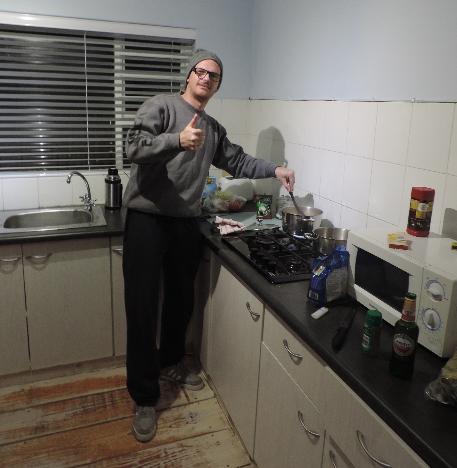 Surfamos por cerca de 1 hora e meia. Voltamos para o Beach Music, tomamos um banho e corremos para pegar ainda um mercado aberto. Compramos alguns mantimentos e mandamos ver num belo carreteiro na primeira janta em J-Bay.