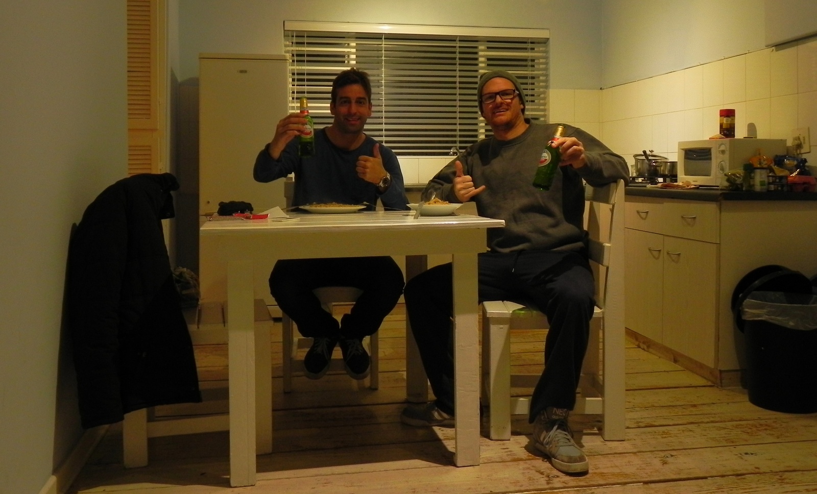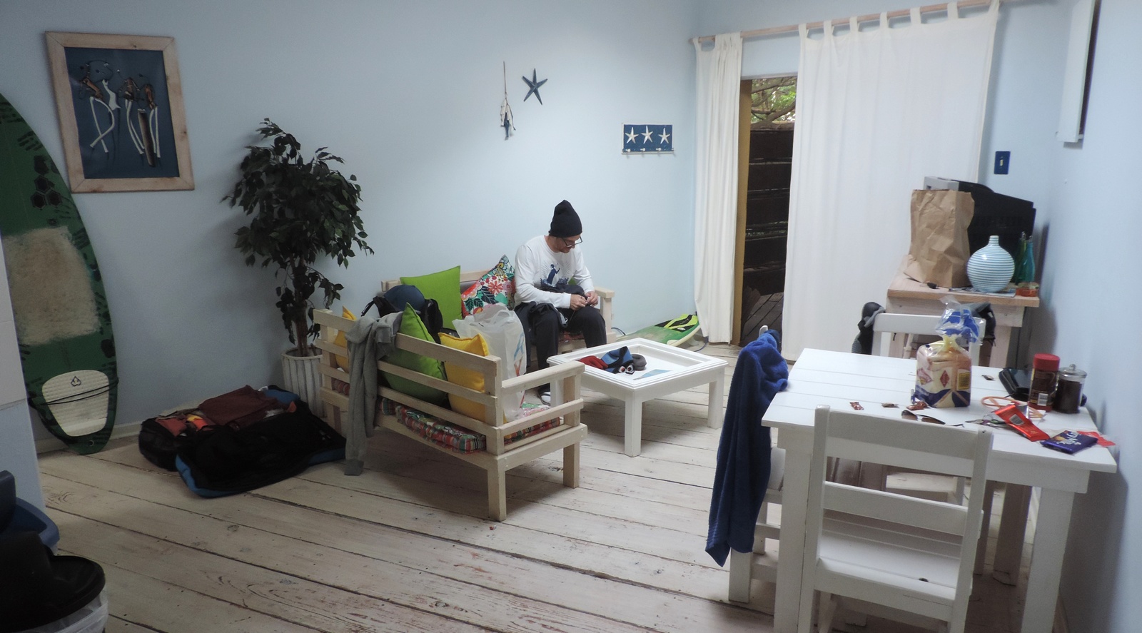 Nos hospedamos no Beach Music que fica exatamente em frente ao pico de Supertubos, possuindo uma vista privilegiada para toda a baía de Jeffreys Bay, além de ter um ambiente confortável e descontraído. Ficamos em um apartamento do Beach Music com dois quartos e cozinha completa, o que nos permitia ter privacidade e também comodidade para comprar mantimentos no mercado e preparar nossos próprios rangos.