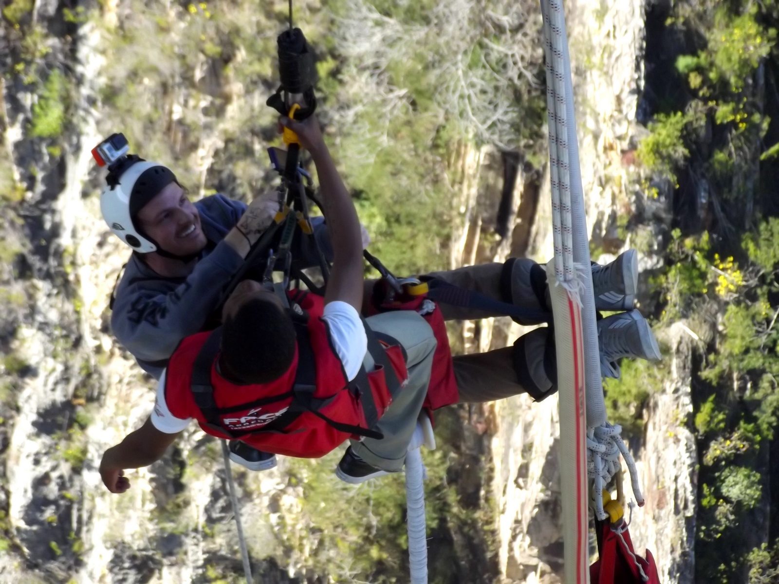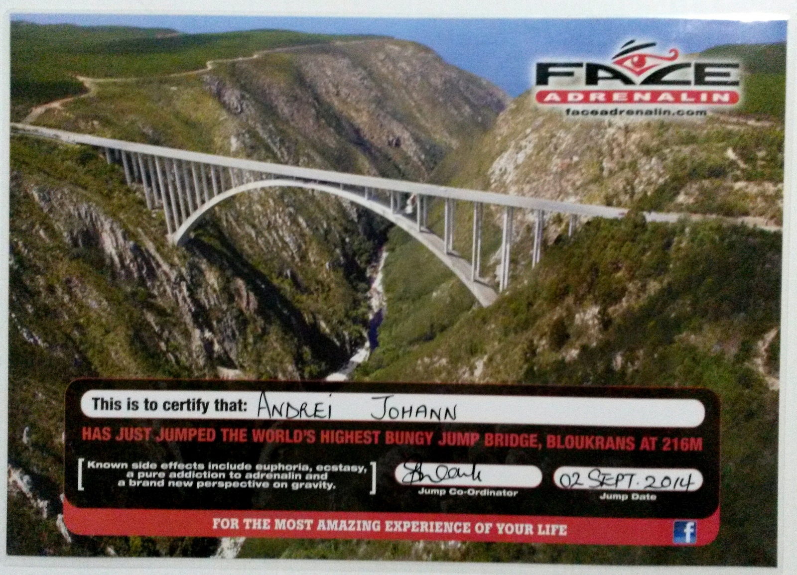 No dia 02/Setembro a previsão era de mar baixo e muito vento em J-Bay, então decidimos aproveitar este dia para irmos até a Bloukrans Bridge, que fica a cerca de duas horas a sudoeste de Jeffreys Bay para saltarmos do Bungy Jump que a FaceAdrenalin opera nesta ponte desde 1997, e que é, nada mais nada menos, que o maior do mundo!!